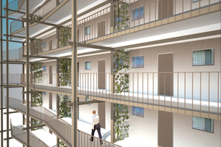 Rénovation, isolation de la façade principale et remplacement des coursives extérieures de l'immeuble rue de la Philanthropie 8 - 1000 BRUXELLES.